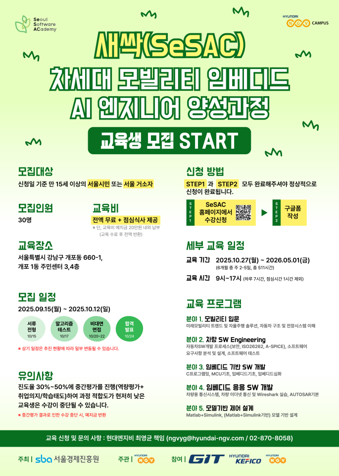 새싹(SeSAC) 차세대 모빌리티 임베디드 AI 엔지니어 양성과정 교육생 모집 START
