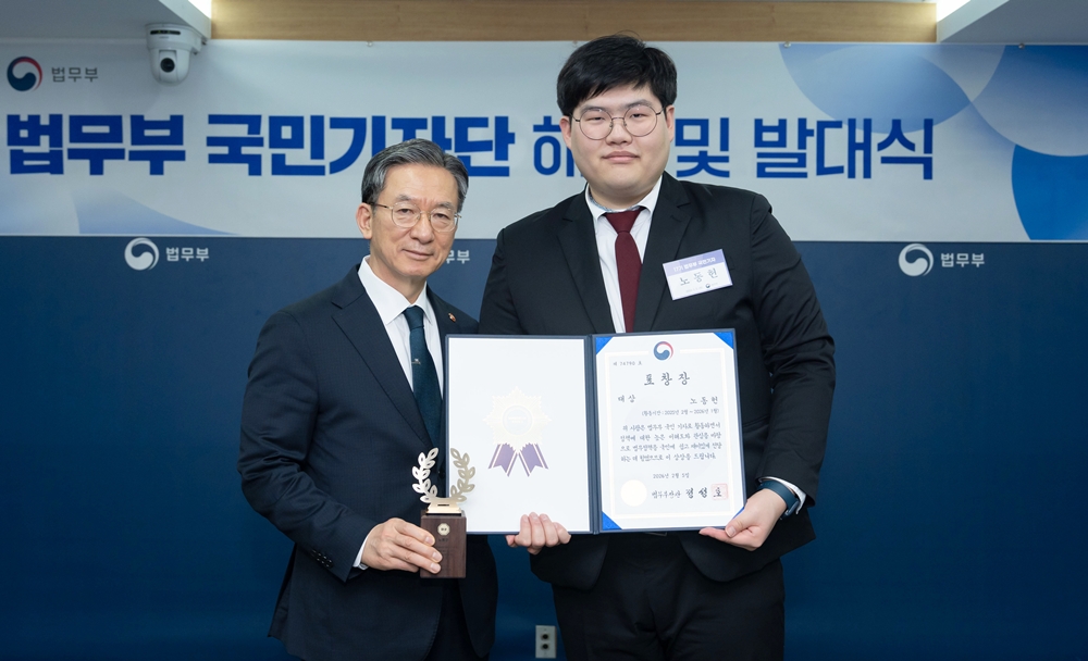 노동헌 학생(법학과), 법무부장관상 수상 “법무부 국민기자단 우수콘텐츠 성과” H